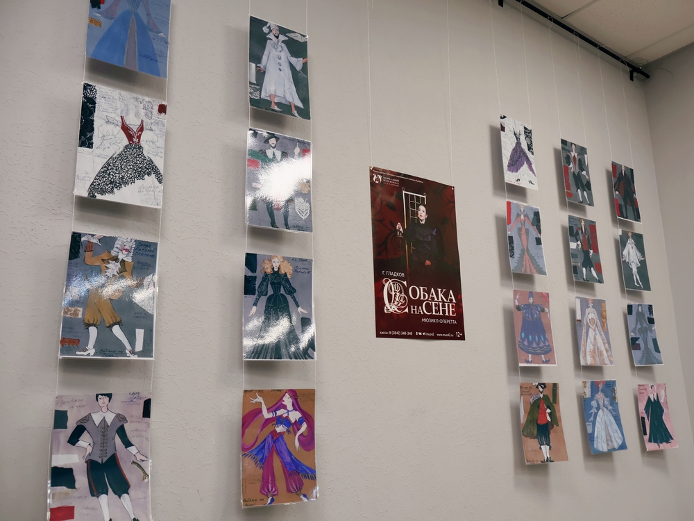 • Выставка эскизов костюмов: Посетители смогли увидеть, как зарождался визуальный облик персонажей, изучив эскизы костюмов, созданных для спектакля.