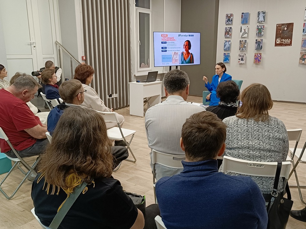 | Клуб «Читающий понедельник»: встреча с членом Союза художников России Натальей Поповой в Библиотеке городских историй27 октября в Библиотеке городских историй прошла встреча клуба «Читающий понедельник» — значимое культурное мероприятие для тех, кто увлечён чтением и интересуется искусством слова. Гостем выступила Наталья Попова — кандидат искусствоведения, а также член Союза художников России и Союза дизайнеров России. Её богатый профессиональный опыт и творческий взгляд сделали беседу особенно интересной и содержательной.  Главной темой обсуждения стала «Игра в неофициальное искусство». Участники клуба поговорили о книге Игоря Холина «Жители барака».    Приглашаем всех желающих на следующую встречу клуба, которая состоится 10 ноября в 18:00. Гостем выступит Антон Абрамов — актёр, режиссёр, сценарист, клоун и преподаватель РГИСИ. Вход свободный. Подробности по телефону: 36-49-47 |
