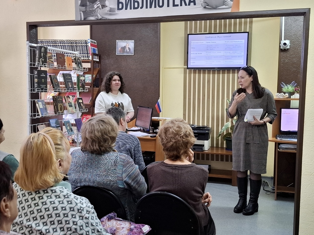 26 марта 2026 года в библиотеке «Книгоград» (бр. Строителей, 42б) состоялась встреча, посвящённая миру поэзии, – день любимых строк «Пусть стихи волнуют душу». Её участниками стали члены клубного объединения «Сибирские корни». В ходе программы гости обсудили значение поэзии в культурной жизни, приняли участие в викторине на знание известных произведений и вспомнили биографии выдающихся литераторов. Особое внимание было уделено творчеству двух классиков русской литературы – Сергея Александровича Есенина и Владимира Владимировича Маяковского. С тематическими выступлениями выступили: - Панина Светлана Робертовна, которая представила содержательный рассказ о жизни и творческой деятельности В. В. Маяковского, сопроводив выступление чтением его стихотворений; - Савина Анастасия Юрьевна, исполнившая стихотворение С. А. Есенина «Гой ты, Русь моя родная». Завершилась встреча в формате «Открытого микрофона». Участники продекламировали любимые стихотворения как собственного сочинения, так и признанных классиков, продемонстрировав интерес к сохранению и популяризации поэтического наследия. Библиотека «Книгоград», тел.: 73-64-74.