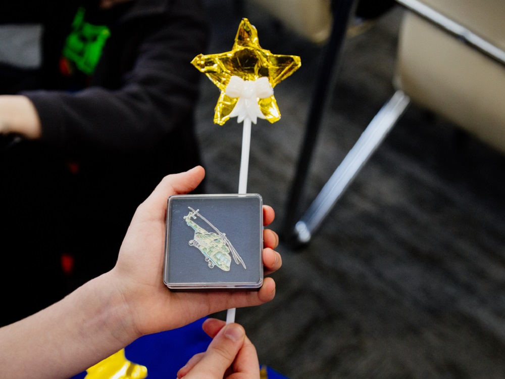 - Александр Петрович Ткачук, капитан, заместитель командира авиационного отряда специального назначения. Вот кто знает о небе всё! Александр Петрович вручил фигурки вертолётов для двоих участников конкурса. Такой приз – настоящая мечта для всех любителей авиации.